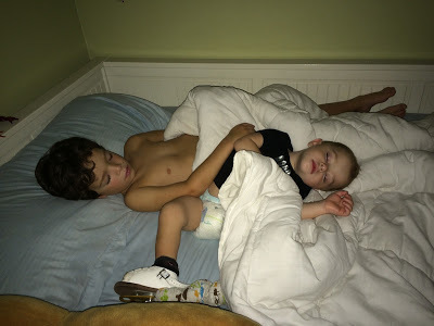 Eli has asked to have a "sleepover" with Ben, so last night his mama let them do it. Could I drown in love?