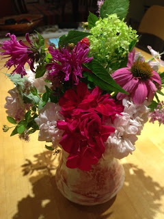Somehow the rest of the day vanished in bits and pieces, and now it's rosé time, the best time of day. I'm working - figuring out what my terrific editor Colin Thomas has critiqued about the memoir and how to fix it. That will be my big project for the summer. That and staking my beans, which are flailing about all over the place.