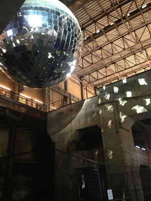So the production is thrilling, but so is the Hearn, a giant of crumbling concrete and shards of steel, with lumpy concrete underfoot and art installations every few yards - extraordinary, unforgettable, including the biggest mirror ball in the world. At the play, I sat next to three elderly ladies - at least in their late seventies - who had come in from Ottawa for this. They'll be spending the entire day at the Hearn seeing all three plays, with a two hour break between each one - 8 hours of performance in a day for the actors. I would have loved to see the two other plays, but hadn't bought tickets because I thought one might be enough. I do not feel deprived by not seeing the others, particularly as it was a stunning day and I was happy to leave the vast wreck of a building, hop on my bike and cycle into the sun. But I know I've missed something spectacular.