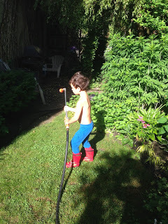 Eli came for a sleepover on Sunday, and did much watering of the garden.