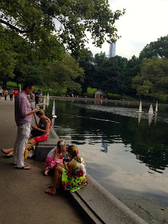 We toured the museum, especially the permanent collection with its luminous Kandinskys, walked up and down the winding path inside, and then I walked Gail along 5th Ave. for some blocks while we talked. She went home, and I walked in the park, where I saw a happy American family on a holiday outing – Mum and Dad so focussed on their phones they didn’t even notice me taking a picture, and two bored daughters with the controls of their sailboats on the pond.