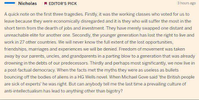 How could Cameron have made such a fatal mistake as to rip his country apart with this terrible referendum? He deserves to lose his position and his career. The world today feels like a much less safe place than yesterday - and after Orlando and all the other hideous events in the States, not to mention the rest of the world, it didn't feel very safe yesterday. A student told me about a mutual friend who's moving to Oklahoma, and I thought, why would you do that to yourself? Open carry machine guns, just what a nice Canadian boy wants to encounter at the grocery store.
