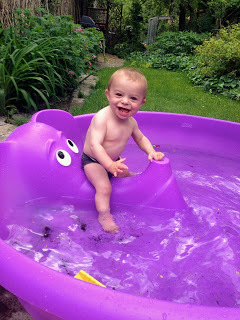 It's way too hot for May. Today I bought a big purple elephant wading pool that caused much delight. I carried it home from Home Hardware on my head.