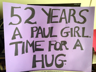 Several people have asked what my sign in Vancouver actually said to Paul. It took me a long time to come up with the wording, many drafts. I tried things like "You saved my life in Paris. Story in my book," and "We met in Paris June 1965. I was in the blue dress. Remember?"