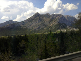 Banff. Too much to say, will write more about it all tomorrow. I'm here for the Creative Non-fiction Collective's conference, gave a Master Class this afternoon on the Writer as Performer. Amazing people, speakers, and this place, this heavenly spectacular place, the Banff Centre for the Arts. Above, a picture shot through the window of the bus from the Calgary airport to Banff.