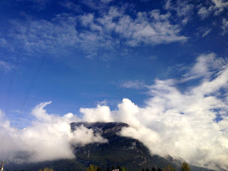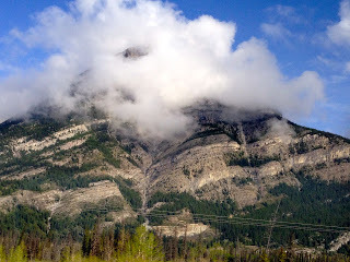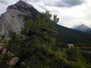 As you know, I spent yesterday on the Icefields Highway with Jane. The weather has been pretty bad, chilly and wet, but with moments of clear sky, even sun. One of those was this morning, so I climbed Tunnel Mountain behind Banff, something I've done each time I come here. It's a good climb, not even 2 k. but straight uphill. I didn't quite finish, as it started to drizzle when I was 3/4 of the way there and I turned around. But it's spectacular.