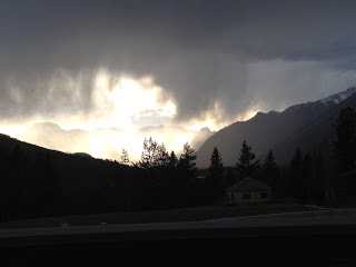 Banff Springs Hotel - what a location! And below, a shot taken from our dining room of a storm coming in at dusk.