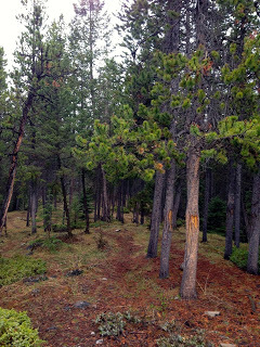 A final post from Banff - a cool drizzly morning. I just went for last quick walk in the woods, stepping over tons of elk and deer scat - but we saw no elk this weekend. Next time we should invite them specifically.