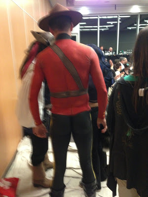 The Banff Centre for the Arts, as I've said many times before, is a miracle, a huge institution in the mountains dedicated to creativity and innovation. And for the weekend, not just a group of non-fiction writers from around the country, but another group having their own conference called Bodyssey: the Canadian Association of Face and Body Painters. Yes. It was impossible for us writers to take ourselves too seriously because we were surrounded, all weekend, by people made up as monsters and skeletons and reptiles - and, unforgettably, as a Mountie wearing only a tiny bit of underwear and otherwise completely naked beneath a painted uniform.