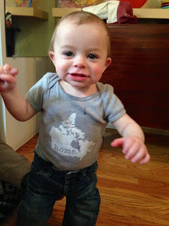 Except for a few hours today, because the family came to visit. How glad I was to see my daughter and her two sons, the big one and the small one, the one telling me how dinosaurs were stinked, and the one crawling all over the kitchen, pulling things off shelves, standing with some help and babbling incessantly. I do not envy my daughter two very energetic boys; she says Ben is even more physical than Eli was, moving more with more strength. But she can handle anything. That's who she is.