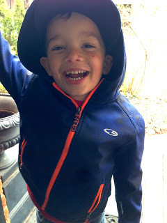 I want that smile. This boy's middle name should be Glee - though he told me his new nickname is Super Flash and he is wearing Angry Birds underpants. He has left me behind already.