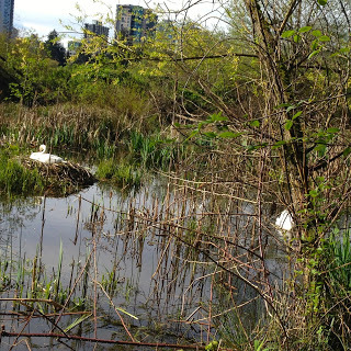 Perhaps one day I'll tire of the morning view from Bruce's balcony, but I don't think so. Wait - have I said that before? I walked around Lost Lagoon in Stanley Park this morning. Swans are nesting. Then I went to the liquor store to buy some Prosecco for Chris.