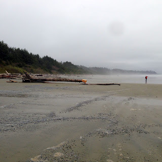 It rained all yesterday and today. The B and B has a roomful of boots, slickers and rain pants. We walked on the beach. Crowded Chesterman Beach