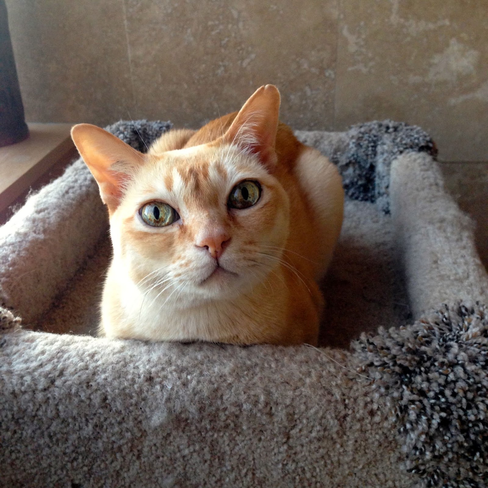 Friday - Vancouver's West End beach, sunbathing on April 1. Chris's extra-terrestrial cat Leon in his cosy perch - the only cat I know who actually USES one