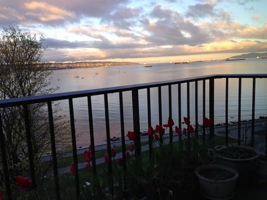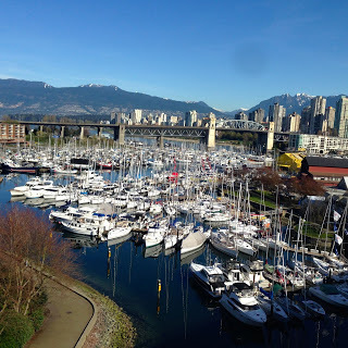 Stopped at noon, the day too stunning to stay inside, walked along the water to the ferry and went to Granville Island, one of my favourite places on earth, to meander around and buy some groceries - bread, smoked salmon, wonderful soup from the Stock Market; sat by the water with the seagulls and had a latte and a scone, then home. I'll go out again now and walk, then later, to Chris's for champagne and out for dinner. I have contacted other old friends whom I'll be seeing soon, my son leaves soon for his prize-winning week in Barbados, I had a FaceTime call with Eli yesterday, the sun is glittering on the water, my manuscript is not complete junk, and life is about as good as it gets. Right here, right now. Thank you.