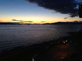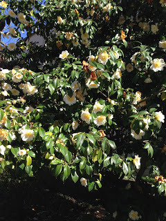 It's spring here - magnolias, bougainvillea, the delicate green of trees, even what look like bushes covered with exploding fat roses that turned out to be camellias - all at least six weeks ahead of Toronto. I'm right on the water, and there's the fresh smell of ocean everywhere, and mountains. It's a wonderful city, and I'm right in the middle of it, and I'm very happy to be here.