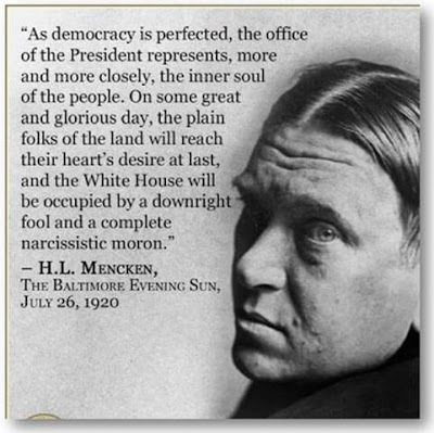 (A recent New Yorker cartoon - the circles of Hell and at the bottom, devils with backhoes digging deeper, with a sign reading, "Coming soon: Trump Circle." Have you seen Barry Blitt's current New Yorker cover of Trump's short-fingered hand? Searing and hilarious, as usual.)