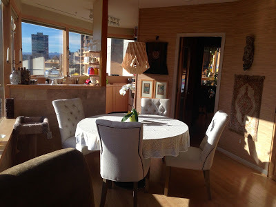 A wonderful journey yesterday to the ferry, across the water - sitting on deck which was cold but sunny and so beautiful - then the bus to downtown Vancouver and home to Bruce's. And there - crisis, I could not get the internet to work. I was an addict suffering painful withdrawal. Luckily, there was a dinner at Chris's to go to, so brought my computer and had my fix. We had a superb meal, every dish from Yotam Ottolenghi, each more intricate and delicious than the last, and a reunion with old friend and fellow actor Allan Gray and his partner Larry. MUCH theatre talk. It was all beyond delicious. And this morning, I figured out the (very simple) problem and am back on-line. I will survive.