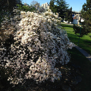 Beach volleyball. The first week of April! I do have to say that apparently even the Vancouverites are marvelling at the heat; some of the trees are weeks ahead in blooming.... ...like the magnolias.