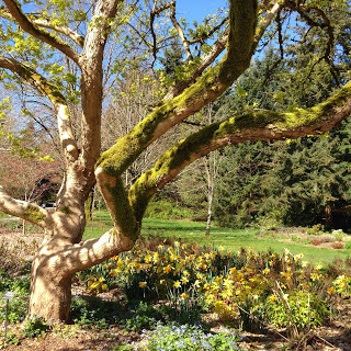 The Van Dusen Gardens: cascades of cherry blossoms, magnolias, azaleas, rhodos. Stunning. The daffs are nearly finished; these are the last few. Look at that moss. The greens are spectacular.