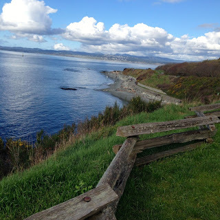 Dear Margaret was there to meet me, and what a drive it was into town with those snow-tipped mountains all around and spring exploding, cherry blossoms, magnolias, forsythia - so gorgeous. Bruce's friend Alex was waiting with the key, and here I am, chez Bruce in the most magnificent location imaginable - right on the water. I unpacked and bought groceries and walked and even played a little on Bruce's piano. Supper with a glass of wine sitting in my host's battered chair by the sliding glass door, looking at the ocean, boats, birds, the sunset on its way.
