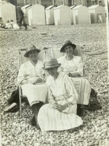 I found a photo of my great-grandmother Alice’s best friend Hattie Cumberpatch, the lady in the beach chair on the left, whose little Victorian ring I wear always on my finger. Bonds with the past, with the villages of England.