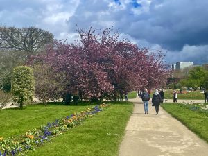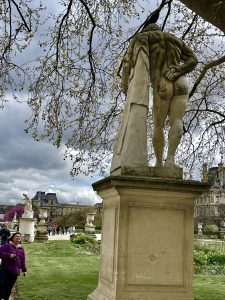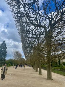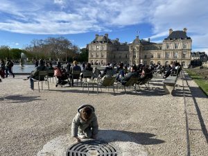 We landed half an hour late, at 10. A long line up to get my Navigo card and the metro into the city – we stopped for 20 minutes for a medical emergency but then were off, and I walked down the Boul. Port Royal to the hotel just as it started to drizzle, was in my room by 2. It was the strangest day here – chilly rain and hot sun alternating for five minutes at a time. First I had a delicious croque monsieur and café crème sitting outside on the Rue Mouffetard, one of my favourite streets in all Paris, and then went, on a sunny break, to visit the nearby Jardin des Plantes, a botanical masterpiece of a park with Paris’s natural history museum and a magnificent cherry tree. I scattered some of my father’s ashes beneath this tree years ago, so when I come to Paris, I visit him and thank him again for making sure I speak French and so feel comfortable in this glorious city. Anna who works with Indigenous elders approved of this, my first stop in Paris. “Paying your respects first is the preferred way to honour one’s ancestors,” she texted. Though it’s hard to imagine my vibrant father as an ancestor.