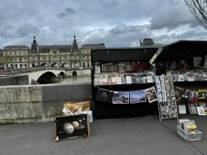 The humble little Louvre, and a view of the Louvre behind a bouquiniste on the Seine. So little changes in Paris. My father took me to visit the bouquinistes in 1965, when I was 14. I bought a used Penguin Jane Eyre. Good for you, girl.