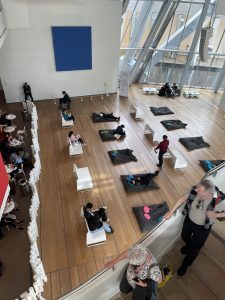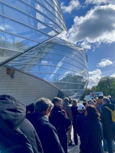 Finally, went up to the terraces with their view of the vast green Bois de Boulogne and then down to have a sandwich in the café, beside an atrium where people were encouraged to lie down and enjoy contemplative music. It’s an incredible museum.