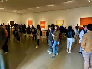 I managed to stay up till 8.30 last night, took a sleeping pill and – miracle! – slept till 7.45 this morning, so jet lag is done. Had breakfast in the hotel – ten euros, or $15, for a cup of coffee, a bowl of granola, and a croissant … hmmm. Tried to bring it up to my room to have in bed, but it’s interdit. Set off for a remarkably easy trajet to the Champs Elysees to find the bus to the Fondation Vuitton. Lineup for the bus, lineup to get in, and then there he is — Mark Rothko.