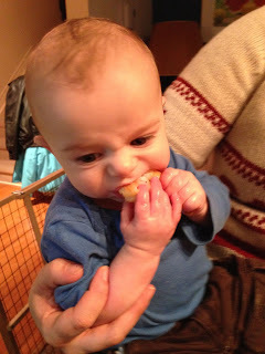 And Eli (wearing a t-shirt that used to be Jake's, celebrating my brother's favourite team) bashed the drums in the basement where Mike and his band play on the weekends. We had a fab family gathering, and when I went back to Ottawa that night, Anna and the kids stayed out there. Much more fun - toys! Snow! A fireplace and lots and lots of fish. Today they were supposed to come in to Ottawa but got snowed in and are staying put till tomorrow. It's clearing, the roads are plowed - this city knows how to deal with snow.What turned out to be best of all was that my aunt and I had a quiet day to ourselves. She reminisced and discussed my parents; we made meals, and I showed her all the pictures from the past year on this computer. She told me again, for the eightieth time, about first meeting me, "a determined little thing of two or three," when we went to visit my mother's parents in London. It's such a privilege to be close to someone who has lived so long, seen so much, and has watched me grow up, and my children, and now my grandchildren. She's incredible, resents having to use a cane, is sharp and astute. I love her very much. Rock on, Auntie Do.