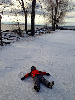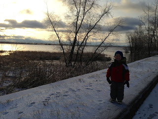 And Eli (wearing a t-shirt that used to be Jake's, celebrating my brother's favourite team) bashed the drums in the basement where Mike and his band play on the weekends. We had a fab family gathering, and when I went back to Ottawa that night, Anna and the kids stayed out there. Much more fun - toys! Snow! A fireplace and lots and lots of fish. Today they were supposed to come in to Ottawa but got snowed in and are staying put till tomorrow. It's clearing, the roads are plowed - this city knows how to deal with snow.