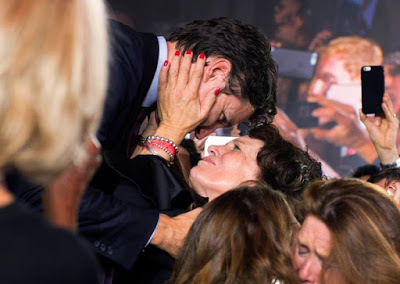 Justin and his mother last night.I know there are tough days ahead, and that a certain disillusionment - as with Obama - is inevitable. But right now, we Canadians have our version of Camelot. And as the days grow cold and dark, that sunny face is a most welcome sight.