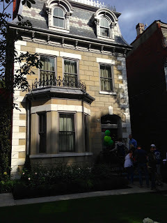 Speaking of the 10% - on a beautiful Sunday afternoon, I went on the Cabbagetown Tour of Homes, where for a fundraising fee we get to see a bunch of the classy houses of the 'hood. My neighbour Richard says it's simply about being able to admire interesting architecture, renovations and interior design, whereas I see it as rich people showing off their ridiculously expensive bathrooms and stoves and the vast number of pillows on their enormous beds. I wanted to see inside the house up the street, a wonderful mansion which took two years to renovate - and sure enough, it was renovated within an inch of its life and much too decorated for my taste, as were nearly all of them. The one I liked was the one where the inhabitants were reading really good books - Lydia Davis on the bedside table! Not THAT'S impressive. And an unpretentious comfortable well-used kitchen and good art. I liked them.