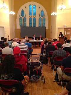 I'm still torn. At the moment, since my vote doesn't matter anyway in terms of defeating the Conservatives, I'm going to vote for the woman who's such a feisty fighter with head, heart and soul. A friend who was at the meeting said, beforehand, "The last thing this riding needs is another wealthy businessman representing us." (Though I don't think any wealthy businessman have in fact ever represented us...) In any case, Bill Morneau is a great deal more than that; he's a terrific guy who has been on several meaningful boards - though also on the board of the small c conservative C. D. Howe Foundation - and has founded a school for girls in a refugee camp in Africa. But he doesn't need this the way she does. So I'm voting Linda. For now. But we have weeks to go. I'm exhausted already.