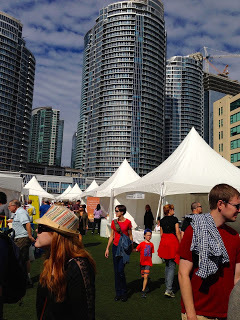 Later: Word on the Street, this year at Harbourfront. Hot hot hot. Marc Cote of Cormorant Books said his sales are way down in the new venue - not sure why. It's always overwhelming, so many books and writers. Usually I have a tinge of sadness that I'm not an official part of the day; at one point I worked at the PEN table and the Ryerson Creative Writing table, and I always dreamed that one day, one of my books would be on sale somewhere. Not yet. Much to celebrate in the work of others.