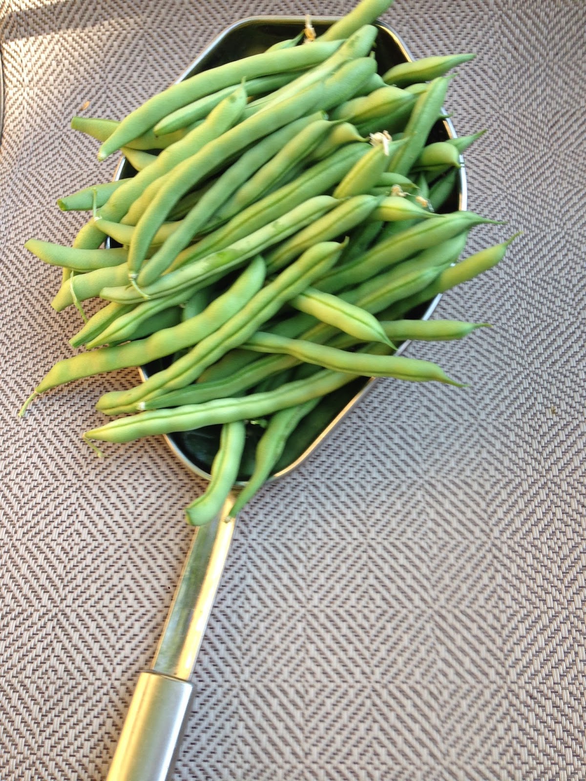 He spilled milk all over his pants in a restaurant. This person is 3 1/4. Doesn't he look like 29, only with no pants, to you?Today's excitement: picking tons of beans and tomatoes: