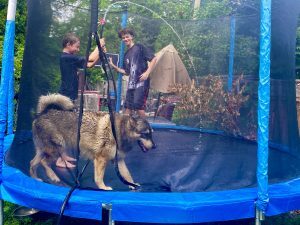 So it was a good day. My son came over to help me do things only a tall person can do. The day before, I spent time with the grandboys while their mother worked; at one point they sprayed each other and Bandit with the hose as they jumped on the trampoline. Who would have thought of that? These troublemakers, that’s who.