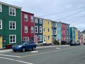 I walked around until it was just too cold. They talk about “Jellybean Row,” a famous row of brightly coloured houses, so I didn’t know that ALL the houses in St. John’s are brightly coloured; every single street is Jellybean Row. I kept snapping pix.