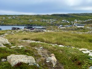 Wednesday morning, there’s sun! Hooray. Nigel and I are going to walk the dogs near Cape Spear, and then Kathy comes to take me to her place, an hour plus north, on Trinity Bay. I am slowing down. The pace is different here.