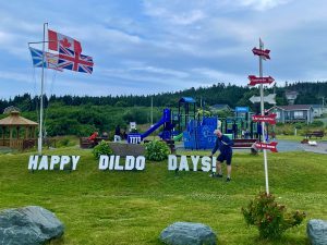 Today, Friday, we went for a long walk through the nearby tangled woods to Hopeall Falls and the abandoned trout farm, and later to the town of Dildo, made famous by Jimmy Kimmel, who paid for a Hollywood-type sign above the town. It was far too windy to walk around, though. A storm is brewing. We had moose sausage for dinner. Delicious.