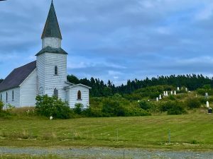 What makes me marvel is – how do things survive the endless brutal winters? People, animals, birds, nature, somehow they all do. There are abundant wildflowers everywhere, including sweet wild roses, and forty trillion trees; this vast province is covered almost entirely with trees. I wonder if the famous Newfoundland kindness and generosity so celebrated in Come From Away is at least partly because it’s survival; in such a harsh climate, without friends and neighbours, you’d die. There’s an automatic and authentic hospitality here, and humour, great understated humour.