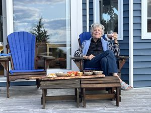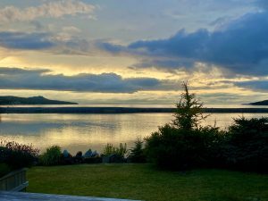 Sitting on Cathy’s deck with the sound of seabirds and a fierce wind to keep me company. The weather is iffy today; yesterday heavenly, tomorrow rain.