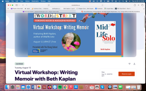 FYI, this placid writer is doing a free Zoom workshop about memoir for Word on the Street soon – Tuesday August 12. Good to keep my brain, if not my libido, in gear.