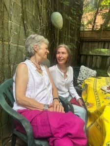A few years ago, when A. and I came up, I’d forgotten the bag with my shoes, so had only the flimsy sandals I’d worn up. But – miracle – both these women have the same big feet! Size 10 ½! What are the chances? So I could borrow all the shoes I could possibly want. Kindred spirits in every way.
