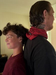 Me with Toronto Lynn, friend since 1969 – and a proud 13-year-old creeping up on his uncle Sam, who’s six foot eight! Eli’s voice is changing, and there are a few tiny pimples on his forehead. He’s in the maelstrom, all right.