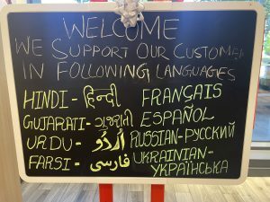 Had to go to Rogers yesterday, long story, which means I do not have a television for the next few days. No Law and Order! Will survive. Loved this sign in the shop, O Canada.