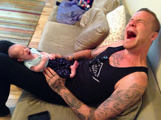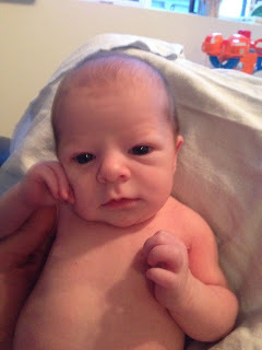 Just over six pounds - a little more than a bag of sugar. Then big brother came home sleepy from his swim and had a nap in the arms of his grandmother and then his mother.
