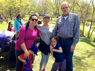 Edgar used to be the tall one in the family.Sunday was the Forsythia Festival in Cabbagetown, games, music and face painting for kids, a celebration of spring. It was also Anna's birthday, and her dad and his wife Tracey and their daughter Greta Lee drove up from Washington, D.C., to be here. We spent all day Sunday together, in my garden, at the festival, having dinner. My ex-husband is a dear friend, a good man, a very successful theatre producer, trusted and respected. His wife has a great sense of humour and takes very good care of Greta and Ed and even of his family in Vernon, sending gifts to his once-powerful mother Connie who now has Alzheimer's. They are coming back in July to meet Anna's baby. Can't wait.
