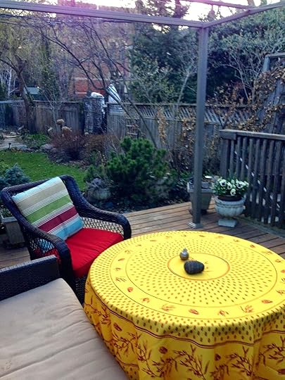 Home. Sitting in the Toronto sun on my own deck IN DIFFERENT CLEAN CLOTHES with a glass of wine. Hear those birds? MY birds. Well, not exactly, but they’re in my trees and eating my birdseed. See that gigantic mess of dead leaves and brush in the garden? MY mess. Hmmm. Everywhere I look, work to be done. And that’s okay.